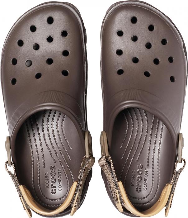 Udobje za dogodivščinePotovanja. Raziskovanja. Dogodivščine. Model Classic All-Terrain Clog je pripravljen na vse, celo v nabolj ostrih pogojih. Z več profila na podplatu in nastavljivim paskom so tla pod vami vedno primerna za vas. Lahek Croslite™ nudi udobje – zapnite si pasek in že greste dogodivščinam naproti.